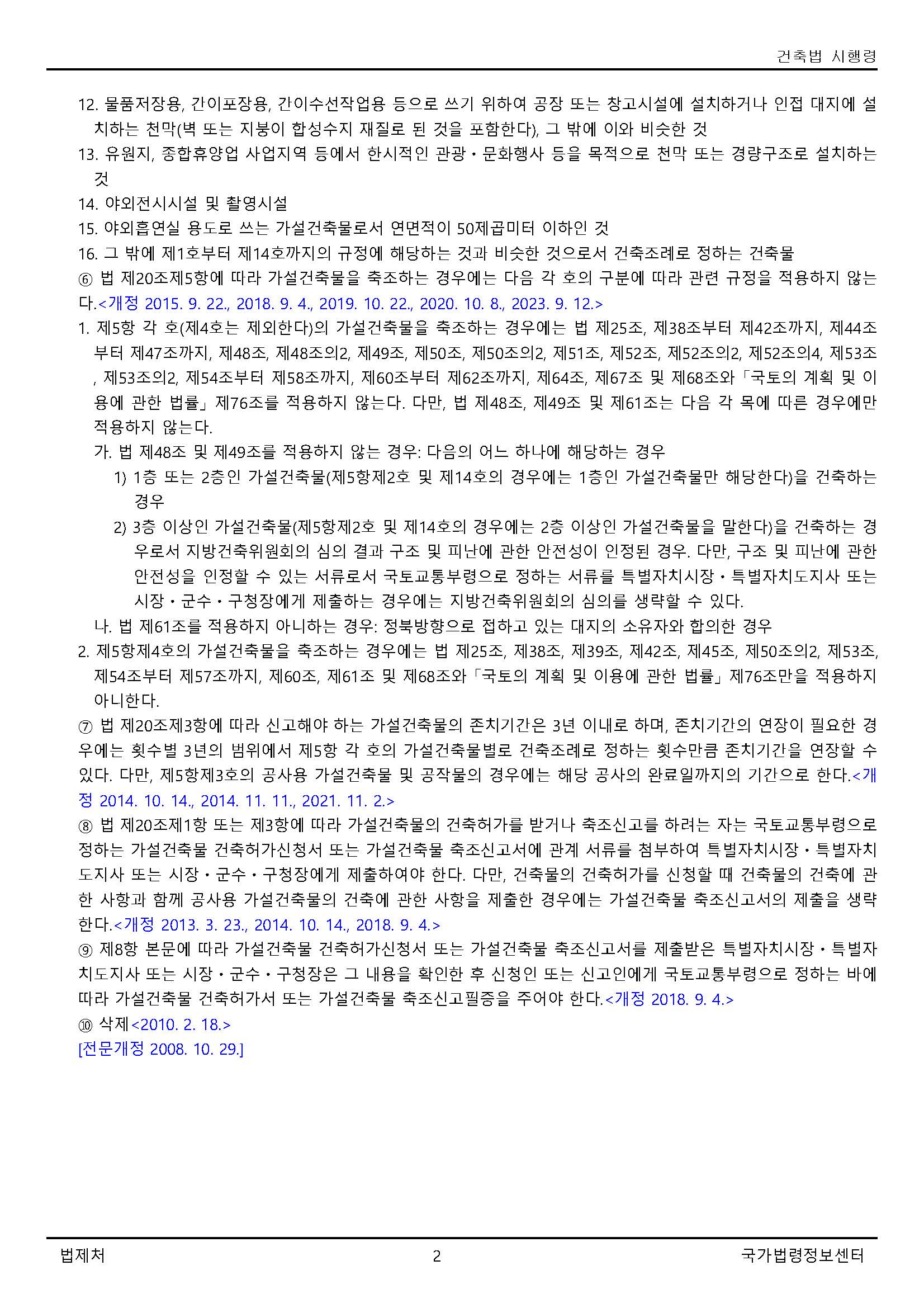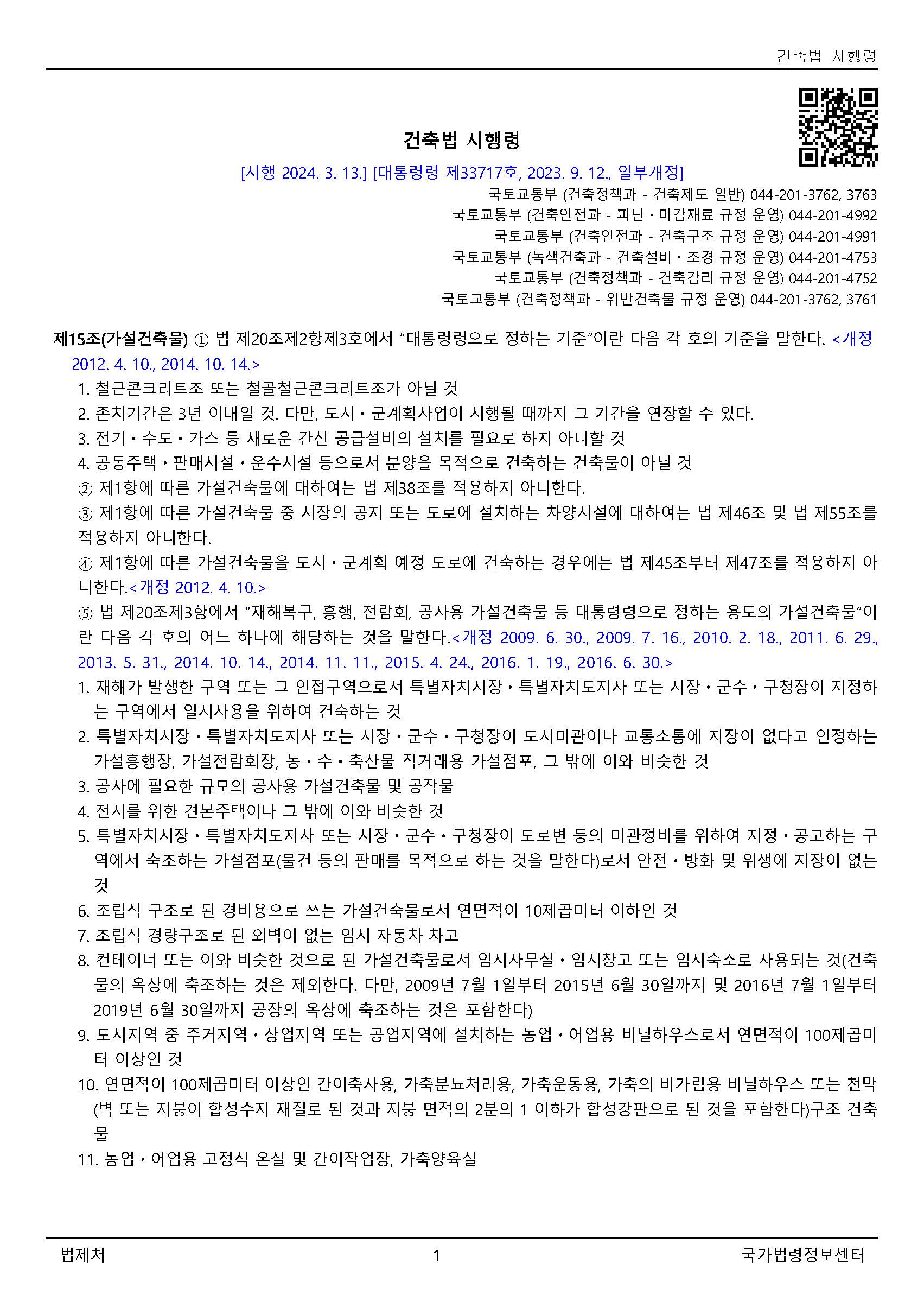가설건축물 법규는 건축법 시행령 15조에서 볼 수 있다.