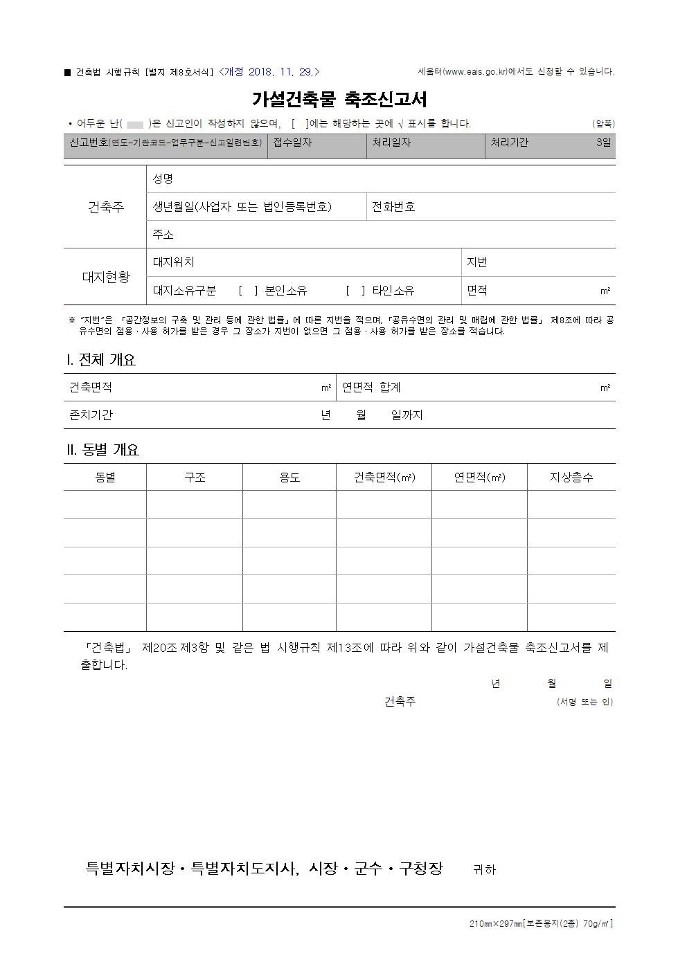 가설건축물 신고서류