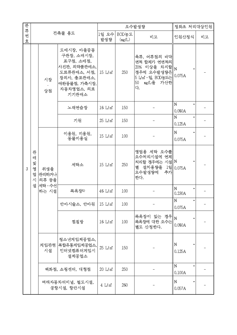 건물의 용도에 따른 오수량 발생을 정해 놓았기 때문에