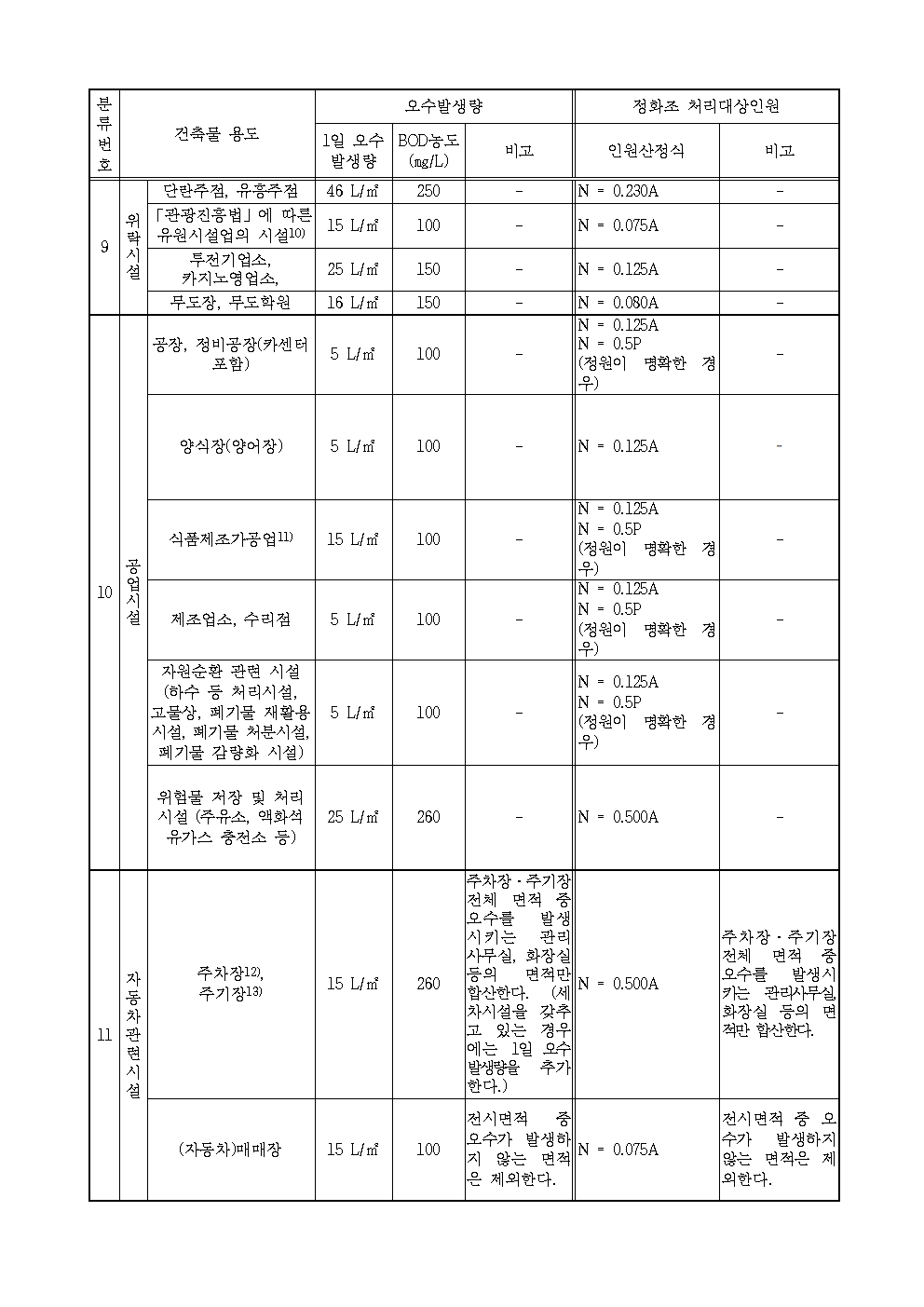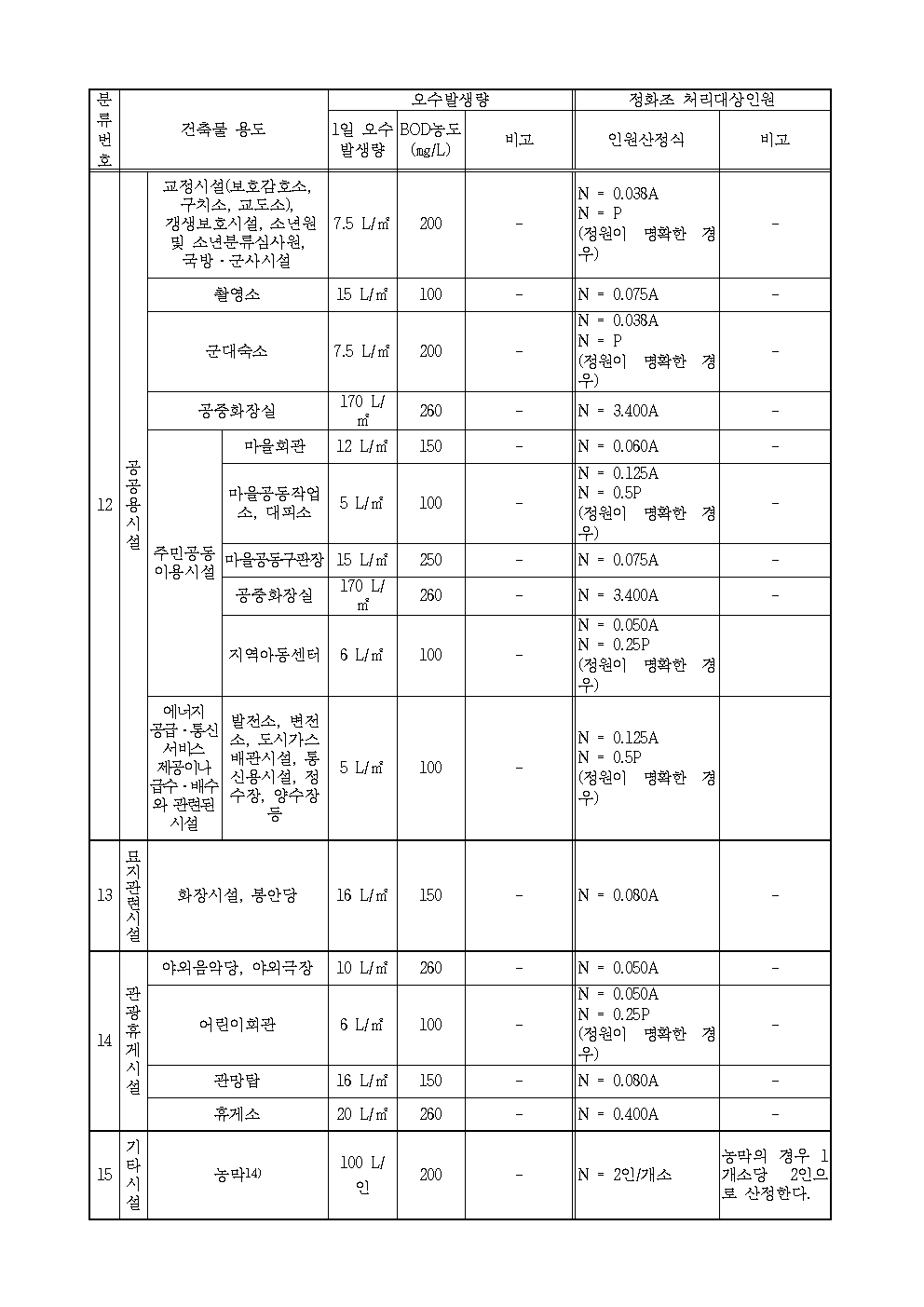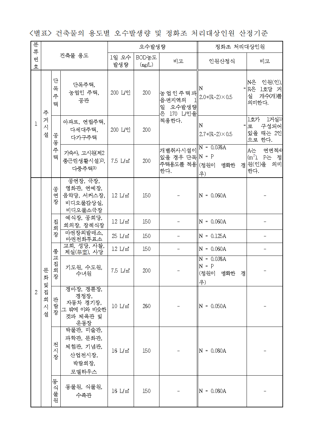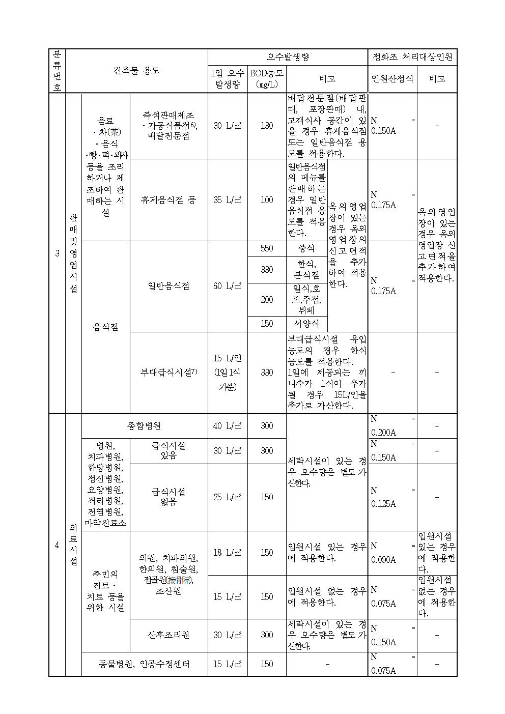 건물의 용도에 따른 오수량 발생을 정해 놓았기 때문에