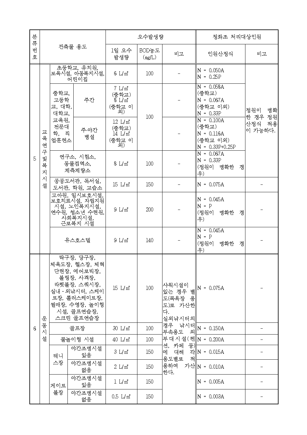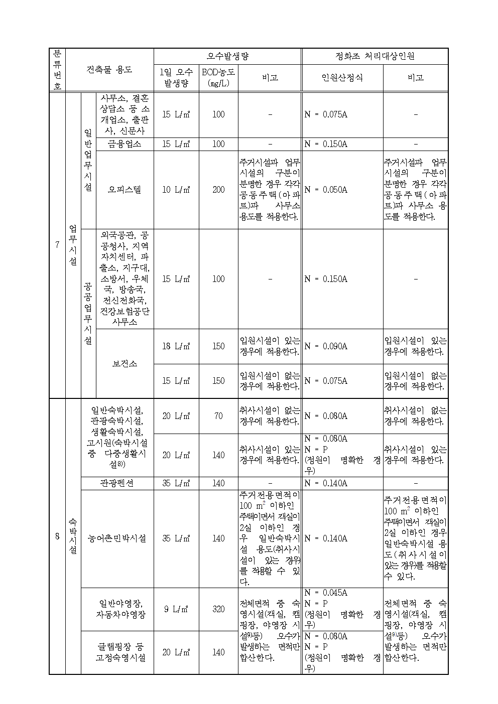 건축물의 오수량은 환경부고시로 하수도법에 근거를 두고 있습니다.