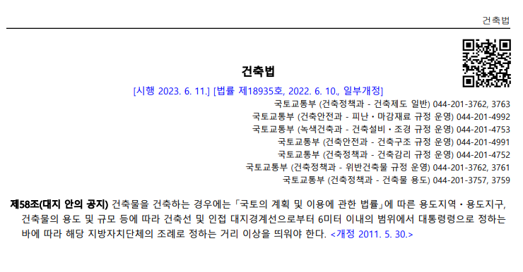 만들었다. 건축법 제58조에는 지방자치단체의 조례로 정하는 거리이상을 띄우게 되어있다.
