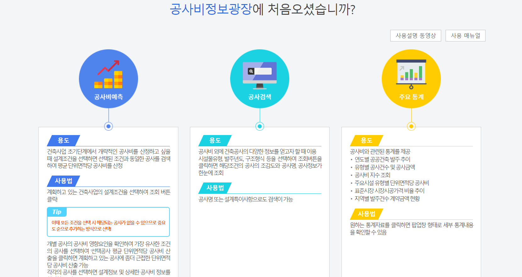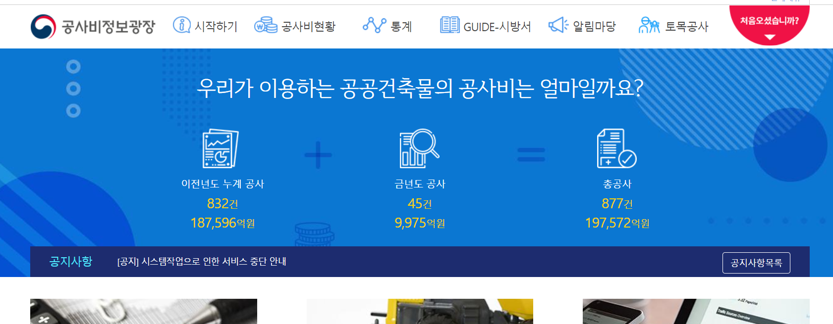 공사비 예측, 공사 검색, 주요통계를 볼수 있다고 합니다.