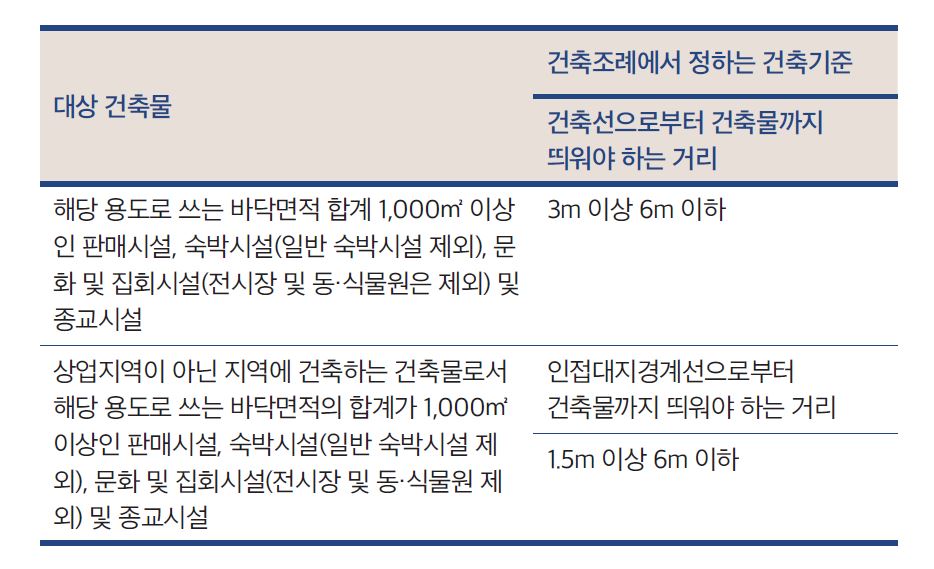 이격거리는 건축물의 규모와 용도에 따라 차등을 주었다.