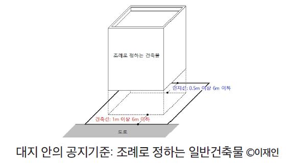 대지안의 공지는 지자체별로 이격거리가 다름으로 지차제 법규를 필수로 봐야한다.