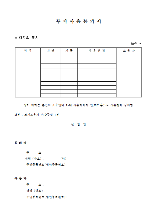 부지사용 동의서는 땅주인과 건물주가 다를 때