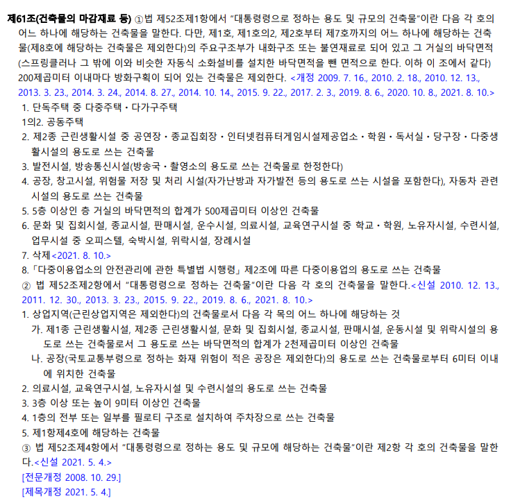 제61조(건축물의 마감재료 등)