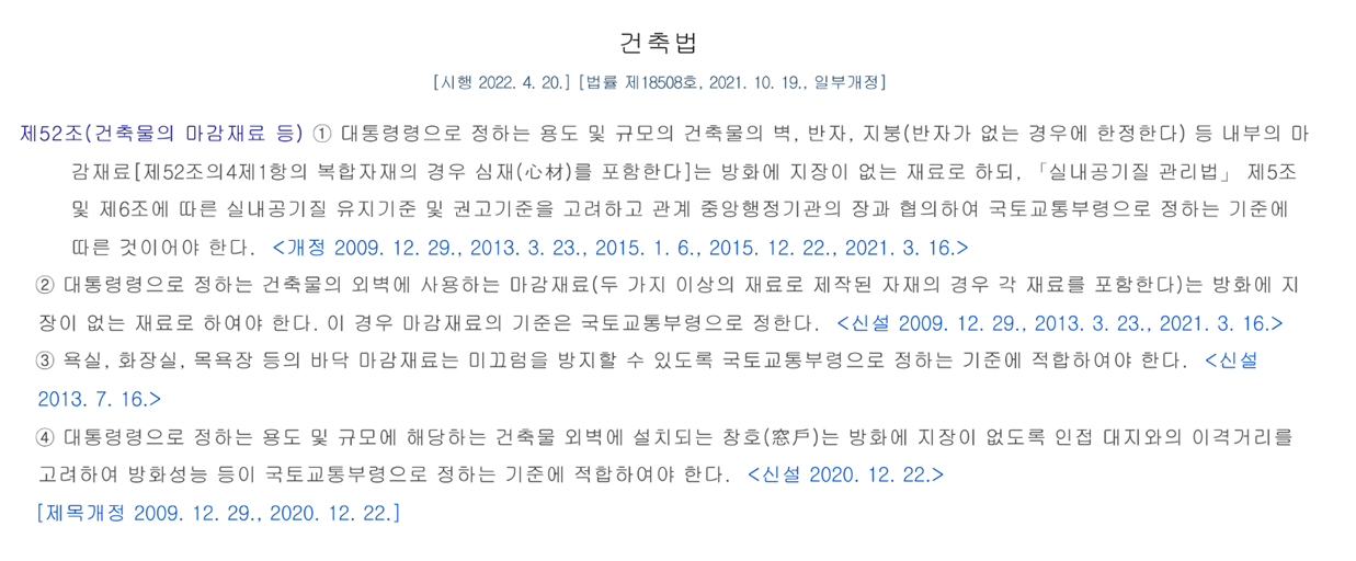 제52조(건축물의 마감재료 등)