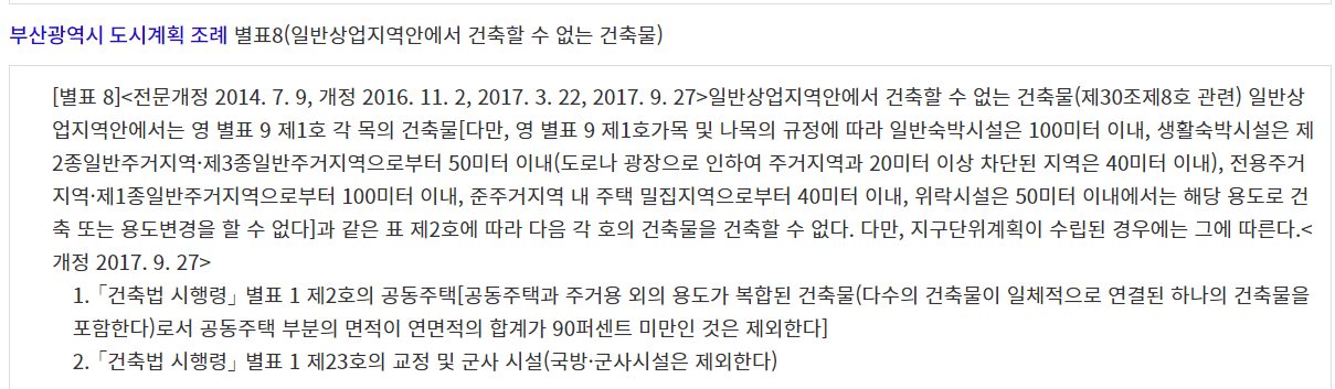 저는 부산의 도시계획 조례를 열람해 보았습니다.