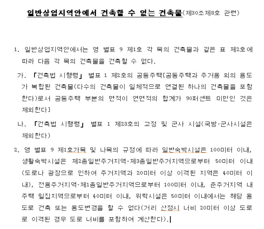 1.상업지역 숙박시설은 주거지역과 관련있다.