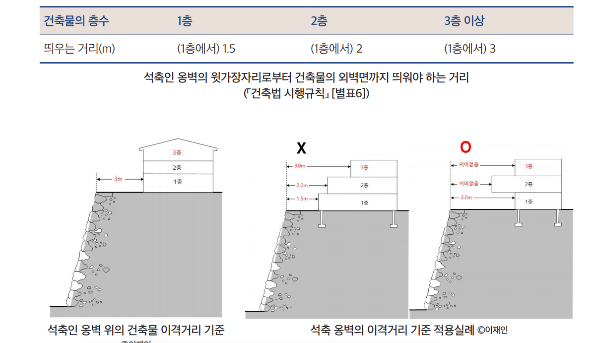 실제로 일체형이 아닌 옹벽은 건축물의 하중이 더욱 무리가 가기 때문에 안정상으로 매우 필요한 법규이다.