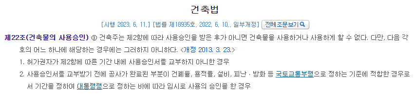 건축법 제22조 제3항 제2호만 해당이 되면 임시로 사용을 가능하게 하였다.