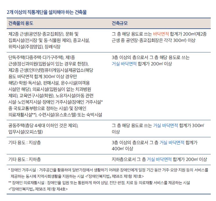 직통계단의 2개 이상 설치 대상