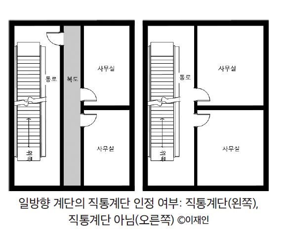 현재는 계단 하나만 계획이 되는 건물도 추후 용도 군과 증축을 고려하면 2개소가 필요한 경우도 있기 때문에